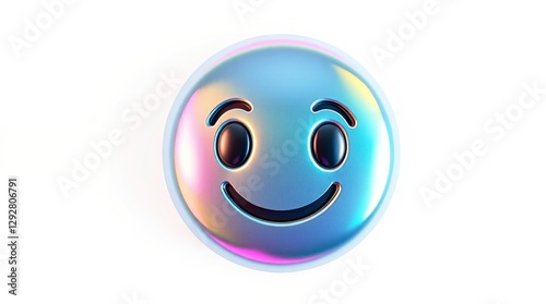 Fototapeta premium Iridescent sheen over a thank you emoji, Bot version. Clean white background. Vivid iridescent reflections.
