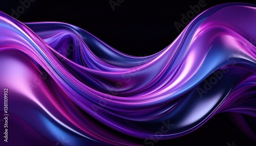 © Arthur, Naklejka premium iridescent silk wave with purple and blue reflections on a dark background, abstract 3d render for modern digital design