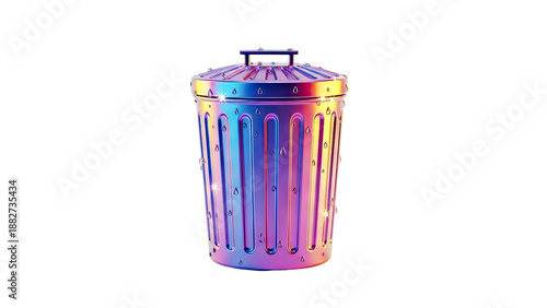 © fendri, Naklejka premium Iridescent Trash Can with Water Droplets