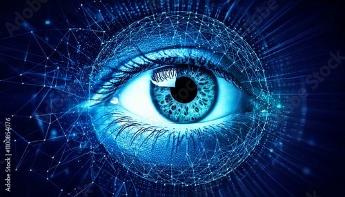 Obraz premium Iris Recognition Technology - Cybersecurity Eye Scan 3D CGI Illustration.