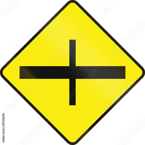 © jojoo64, Obraz premium Irish road warning sign - 4-way Intersection ahead
