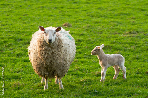 © Patryk Kosmider, Obraz premium Irish sheep and young lamb
