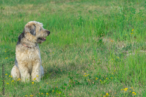 Fototapeta premium Irish soft coated wheaten terrier stay on grass