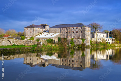Fototapeta premium Irish stone architecture with reflection in the river, Askeaton
