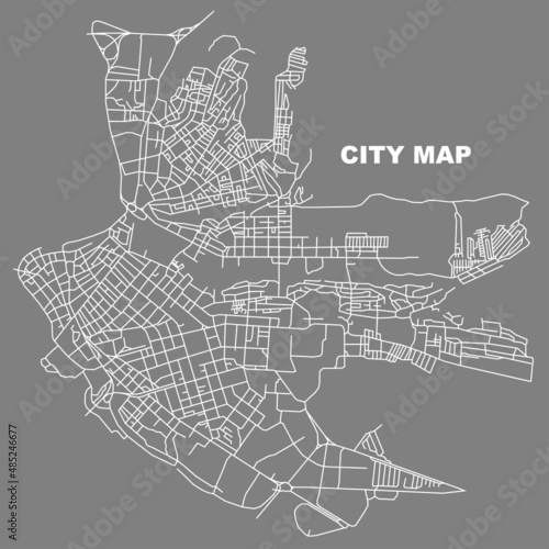 © Юрий Парменов, Obraz premium Irkutsk city map. Line scheme of roads. Town streets on the plan. Urban environment, architectural background. Vector