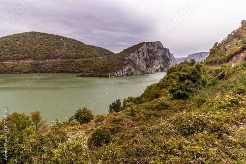© Matyas Rehak, Fototapeta premium Iron Gate reservoir on Danube river between Serbia and Romania