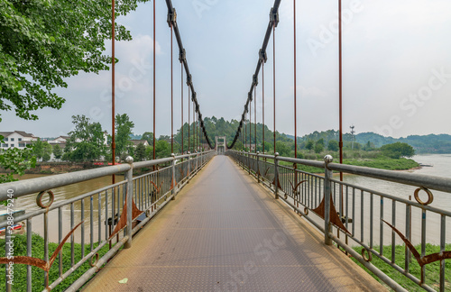 Obraz premium Iron rope suspension bridge in the ancient town of Huanglongxi, Chengdu,...