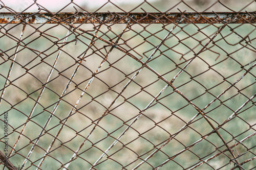 © Nariman, Fototapeta premium Iron rusty net as a blockage