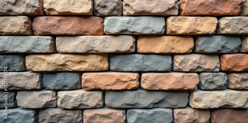 Obraz premium Irregular stacked stone bricks, subtle color variations, aged, stonework