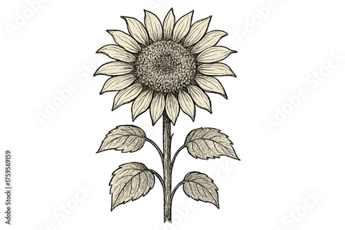 © Дар'я Солтис, Fototapeta premium Irregular vector head illustration sketch large sunflower tall blooming texture doodle