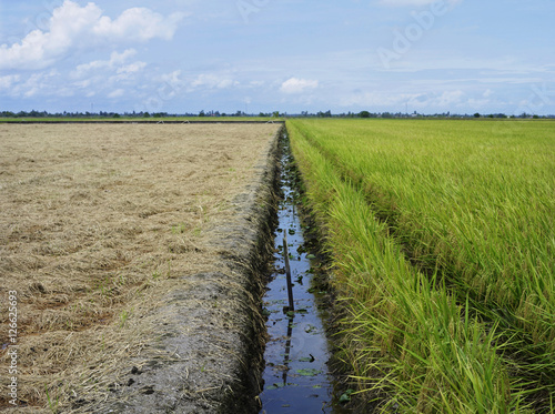 © Alexander, Fototapeta premium irrigation channel in between rice fields