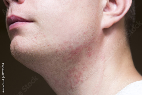© Pavlo, Obraz premium Irritation after shaving on the neck of a man, close-up