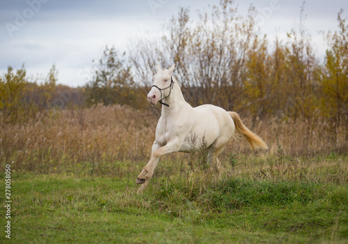 © Nadezhda, Obraz premium Isabel stallion frolics in the autumn fields