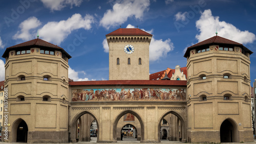 Obraz premium Isartor panorama hochauflösend HD 4k sehenswürdigkeit münchen sehenswürdigkeiten