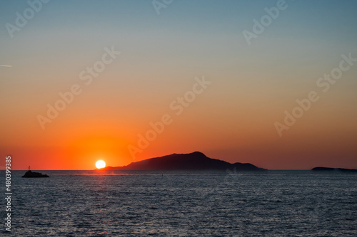 Naklejka premium Ischia Island Orange Sunset in Italy in the Tyrrhenian Sea