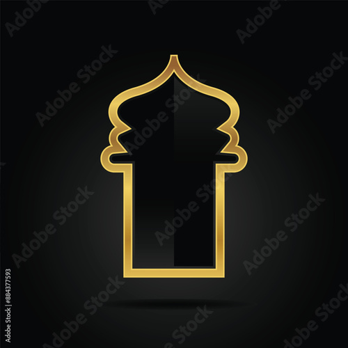 Fototapeta premium Islam mosque windows and arches vector illustration. Abstract isolated of gold frames with a shadow in different shapes on black background