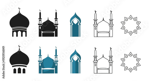 Obraz premium Islamic Architectural Elements Vector Icon Set: Mosques, Domes, and Geometric...