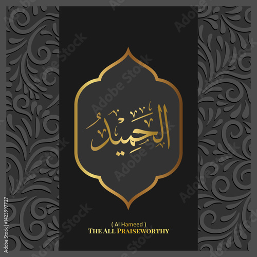 Fototapeta premium Islamic calligraphy design. 99 Names of Allah. Asmaul Husna. 56. AL-HAMEED: ( Translation : The All The Praiseworthy )