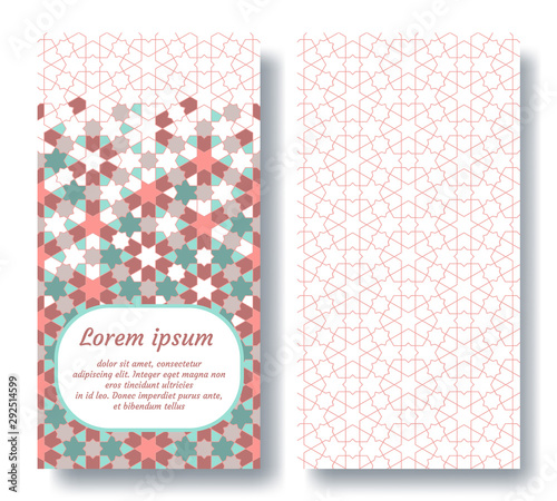 © alstanova@gmail.com, Fototapeta premium Islamic double card for invitation, celebration, save the date, wedding performed in arabian geometric tile. Colofrul vector template