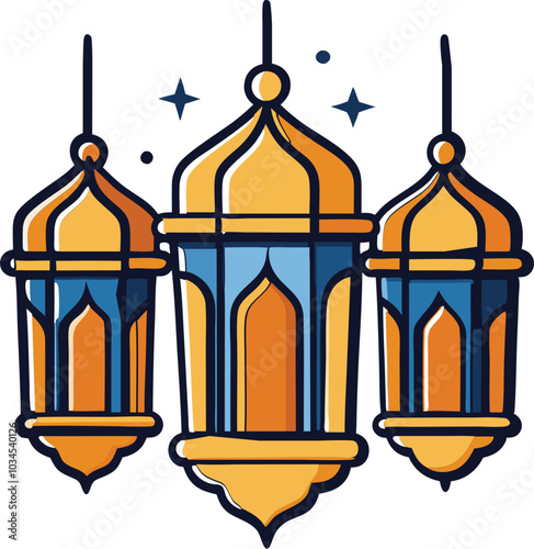 © TA graphic design, Obraz premium Islamic Eid lanterns silhouette vector illustration .