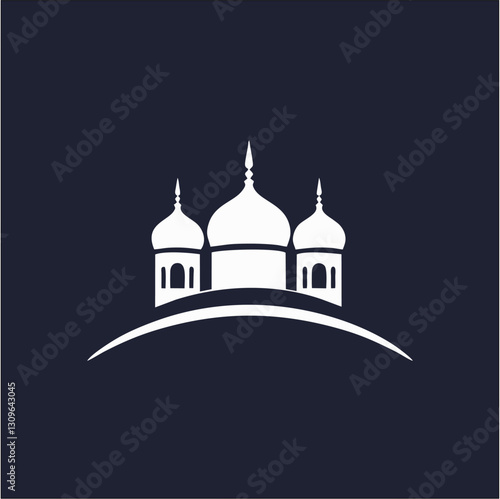 © Rafli, Obraz premium Islamic mosque and crescent moon with lanterns. Eid Mubarak logo. vector illustration