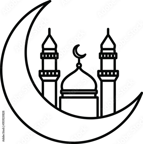 Obraz premium Islamic Mosque with Crescent Moon Line Icon – Ramadan and Religion Symbol