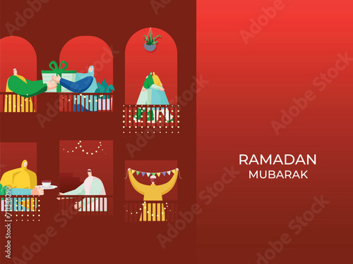 Naklejka premium Islamic People Celebrate And Enjoy at their Balcony on The Occasion Of Ramadan Mubarak.