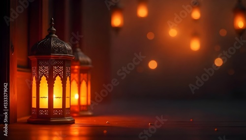 Fototapeta premium Islamic Ramadan lantern banner featuring a warm, festive glow, perfect for...