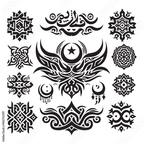 © Graphicteebd, Fototapeta premium Islamic Tattoos tribal designs bundle collection in a white background