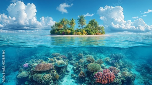Fototapeta premium island and underwater views with beautiful coral reefs