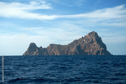 Naklejka premium island of es vedra imposing rock massif seen from the sea
