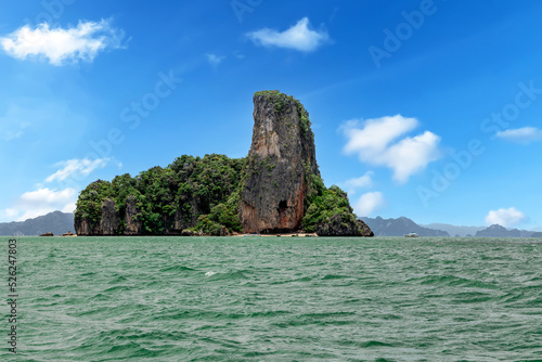 Obraz premium Island Phuket Thailand. Lovely rock in the middle of the ocean surrounded by mountains