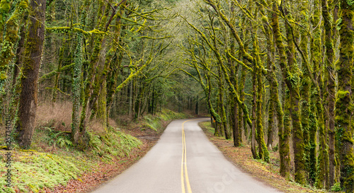 Naklejka premium Island Road Tree Canopy Covering Two Lane Highway Washington State
