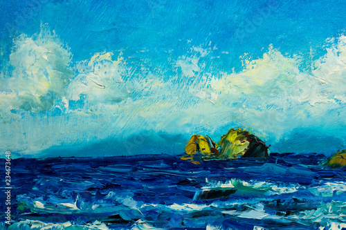 Fototapeta premium Islands and waves in the sea - Marine seascape wave painting