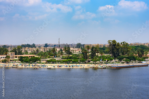 Obraz premium Ismailia, Egypt from ship passing Suez Canal