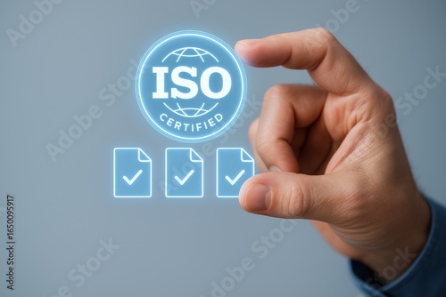 Fototapeta premium ISO certification displayed on a digital interface.