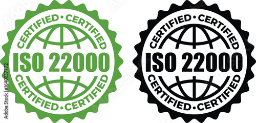 © Rafay, Obraz premium ISO 22000 Certification Stamp – Vector Seal and badge for Food Safety Standards