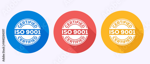 Obraz premium ISO 9001 certified icon design illustration, Standard quality label sign symbol in shadow button design