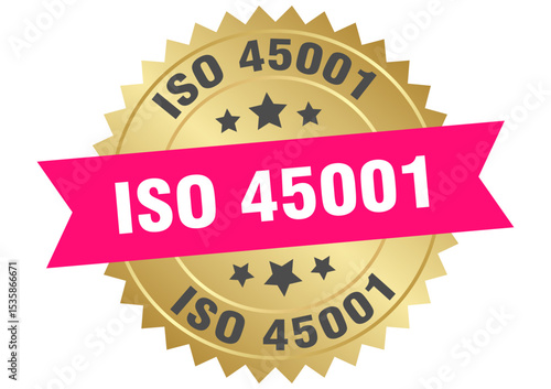 Obraz premium iso 45001. iso 45001 round pink and gold label isolated on transparent background