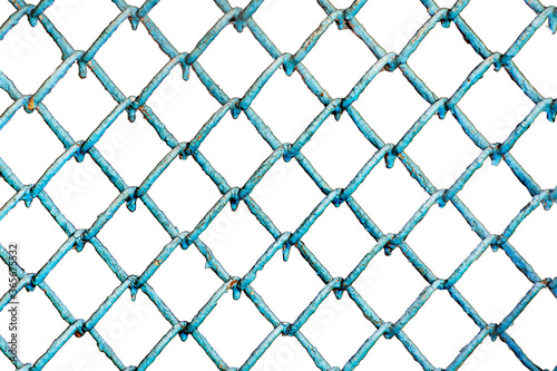 Fototapeta premium Isolate of an old metal mesh on a white background. Blank for design layout.