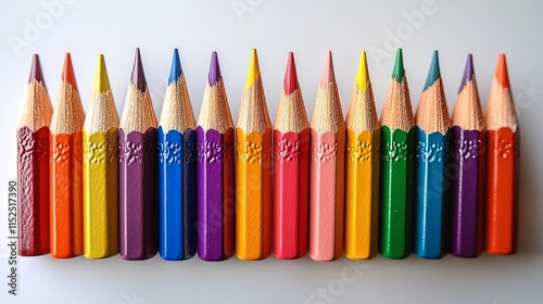 Fototapeta premium Isolated a white background A set of sharpened pencils in a rainbow of colors...