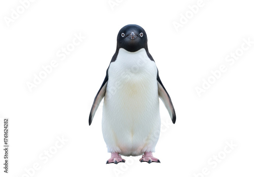 © Natalia, Fototapeta premium Isolated Adelie penguin stands at attention looking toward the viewer with curiosity
