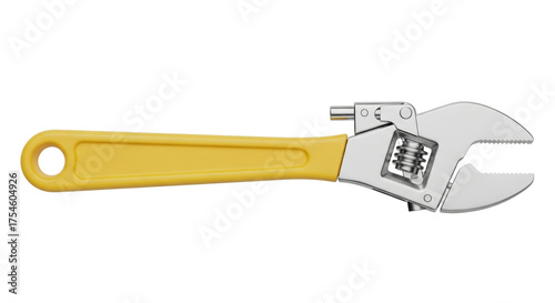 © Emma, Obraz premium Isolated adjustable wrench tool engineering equipment, fixing device utility yellow silver
