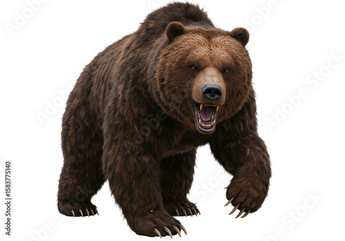 Fototapeta premium Isolated Aggressive Grizzly Bear Walking Forward