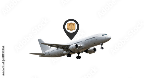 Obraz premium Isolated Airplane with Delivery Box Location Marker 3D