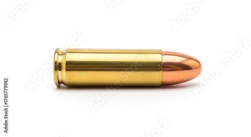 © MumarProject, Fototapeta premium Isolated ammunition round on white background showcasing precision engineering