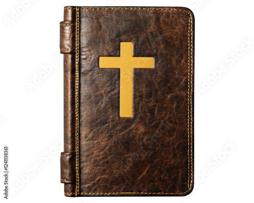 Obraz premium Isolated Antique Leather Bound Bible Book with Gold Cross