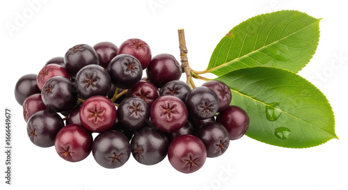 © Sophia, Fototapeta premium Isolated Aronia Berries with Leaves