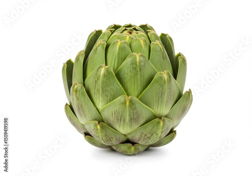 © Morad, Fototapeta premium Isolated artichoke featuring green leaves and natural patterns, set against a white background for health food promotions.