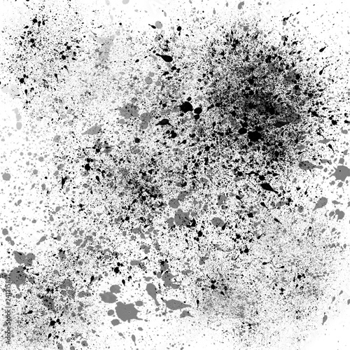 © artistmef, Fototapeta premium Isolated artistic ink paint splatter textures and decorative elements on white paper background. Chaotic isentegration effect.